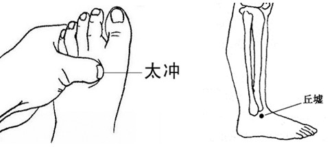 按摩穴位:太冲、丘墟穴