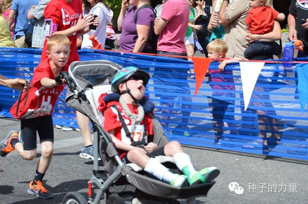 他只是一个8岁的小朋友,但是他带着脑瘫的弟弟完成了整个铁人三项赛!