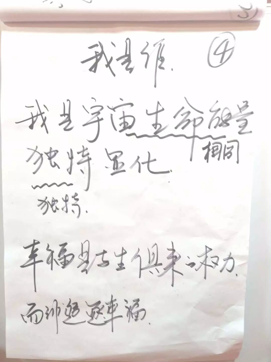 ✿我是从渭南赶过来的,坐了两个小时的车。每次听到冥想音乐响起时,眼眶就湿润了。我此刻的心情是开心、喜悦、激动。课程里最大的收获是自我价值感的提升。当自己低自尊的时候,我虽然也在追求幸福,但种下的却是一粒苦种。我以前有腰椎间盘突出,坐一会儿就腰也疼,脖子也疼,但那五天的课程里,我没有一点儿不舒服的感觉。这也是我从渭南做两个小时的车过来的原因。