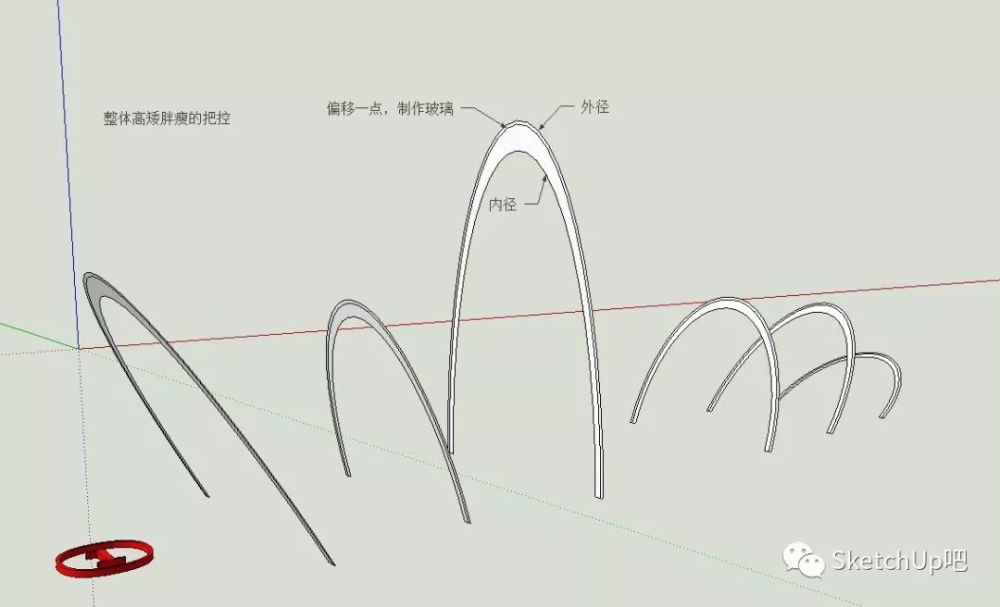 第二步:选取上一步偏移内径,利用Fredo6插件集(SUAPP编号155)里曲线放样,制作景观小品内部的玻璃。