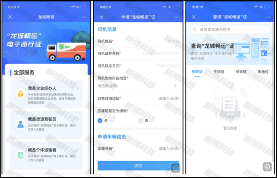 为方便企业及货运驾驶员在常州各大卡口能及时通行,建设“龙城畅运”电子通行证。通过“龙城畅运”电子通行证的申请、查询、查验,货运行程管理、企业信息管理等功能,实现整体流程可追溯、审批更快速、过程可闭环。