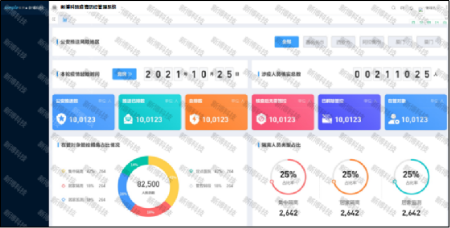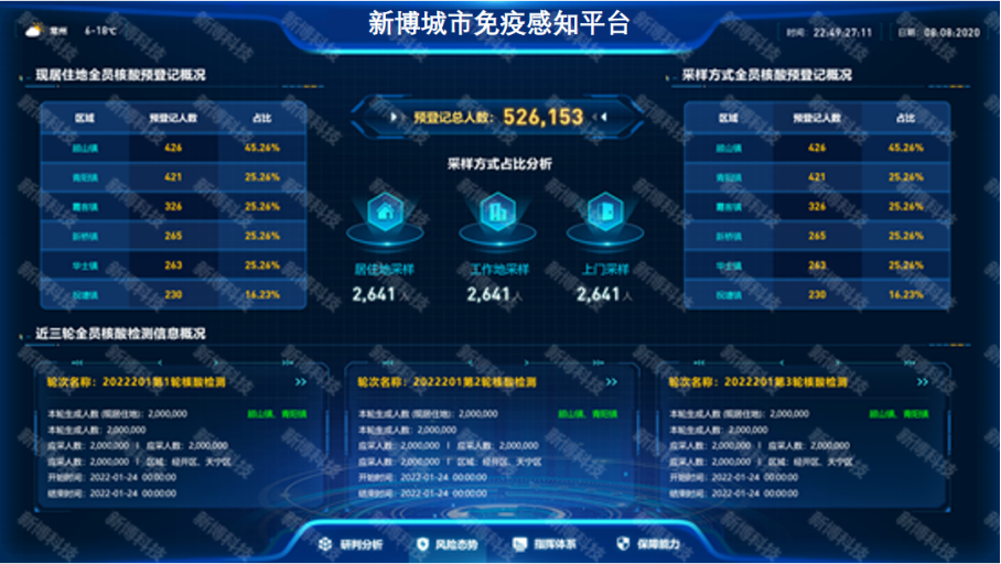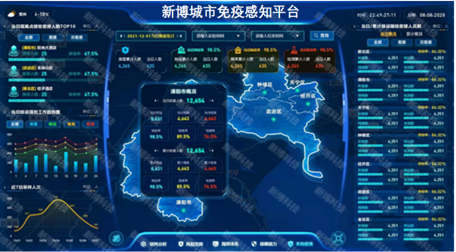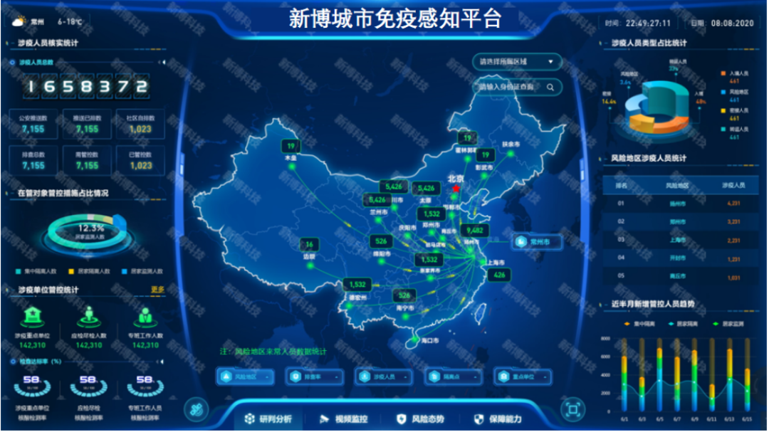 新博科技通过发挥“大数据+网格化+铁脚板”的机制优势,加强大数据中心、公安、卫健、综治等部门的业务融合、内外联动,努力做到疫情信息精准推送,重点人员全流程管控,防疫工作层层落实,不断织牢织密市疫情防控网。通过大数据、人工智能等新一代信息技术,盘活疫情防控海量数据,通过信息化手段助力疫情防控形势实现六步精准化、闭环管理,实现疫情防控“感知、分析、预警、研判”全程可视化管理。