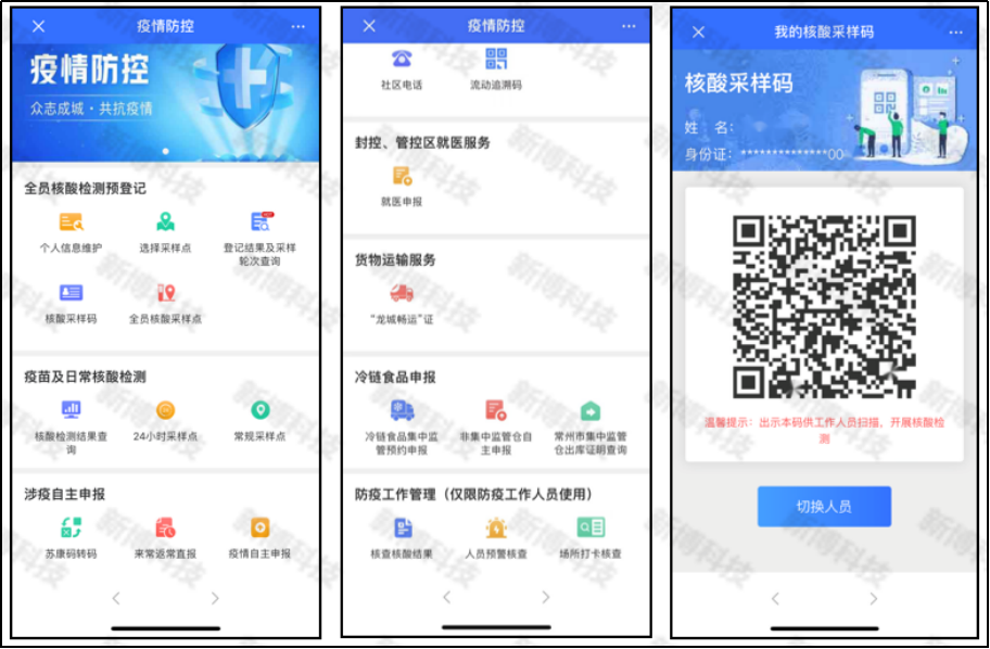 第一时间推送全市疫情防控动态,形成全市“联防联控、群防群控、便捷服务”的良好氛围。设置“全员核酸检测预登记”、“核酸采样点查询”、“核酸检测结果查询”、“疫苗预约”、“封控、管控区就医服务申报”等群众最关心的服务。与全市核酸检测实验室系统互联互通,检测结果数据实现实时全量上传汇聚,方便市民第一时间查询结果。公布全市社区网格联系方式,方便返乡人员及时报备,咨询防控措施要求。