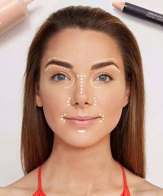 有阴影就有提亮,色彩的对比能够突出重点,打造立体效果。在我们的眉骨、鼻梁和下巴处要重点提亮。眼周、鼻翼和唇周的部位也要注意肤色均匀。不然暗沉的底妆会让气色看上去很糟糕,也不够清透。