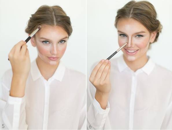 Step3:发际线的部位不要涂得太宽,这样额头会显得太暗沉。少量多次的在发际线周围来回轻扫。鼻影的部分用刷子先描出你想要的形状和宽度,然后再晕染开。