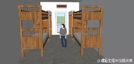 桃区为四人间和六人间两种规格,上床下桌,有独立的卫生间和浴室。