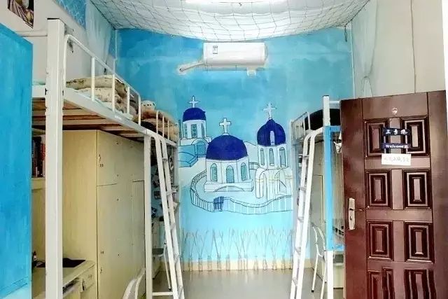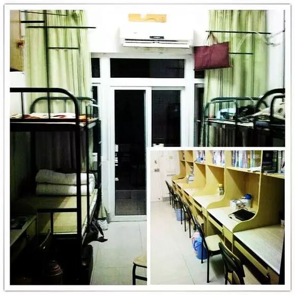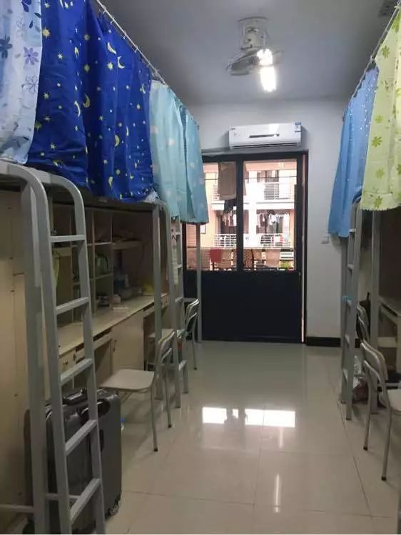 福外均为四人间。上铺下桌组合式家具,有椅子、电脑桌;配有卫生间、热水器、空调、阳台、电话等生活设施。