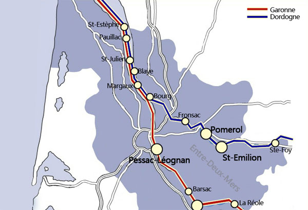 叉之间的陆地被波尔多人浪漫的称为“Entre-deux-mers”(两海之间)。加伦河发源于法国和西班牙交接处的比利牛斯山,流经法国南部图卢兹