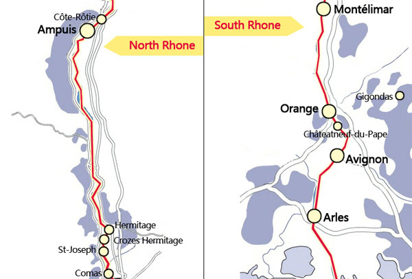 Rotie、Condrieu、Cornas和Hermitage。随着罗纳河的南进,河谷拓展,气候变换。南罗纳河谷更加倾向于“普罗旺斯”,夏季温暖