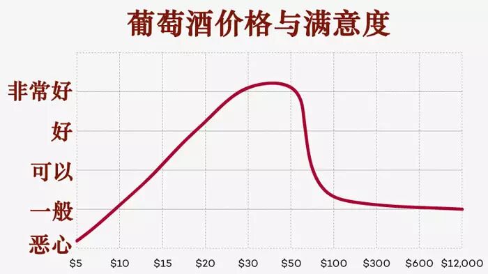 对于葡萄酒专家而言,往往30至50美元/瓶的葡萄酒最令人满意,而之后,价格越高,满意程度越低。哎,都说有钱能使鬼推磨,这人,怎么连美金都买不到他的满意呢?