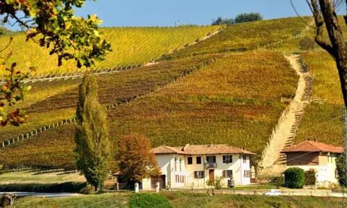 胜酒庄位于意大利最为尊贵的皮埃蒙特大区,靠近Olivola镇。酒庄坐落在Bricco山顶上,由于山上的泥土含钙并且多为泥灰质,使得这儿的山丘颜色