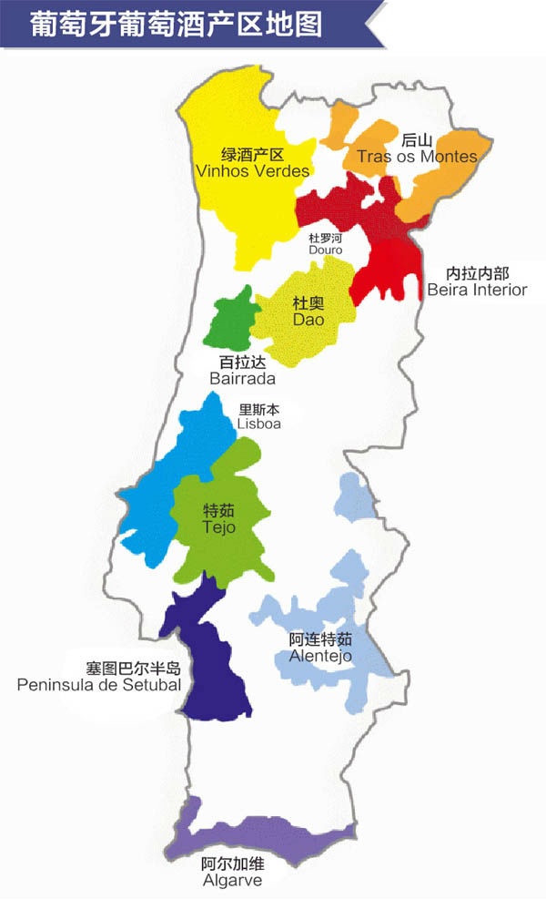 3、葡萄牙共有14个主要葡萄酒产区,其中最知名的为杜罗河谷(Douro)。杜罗河谷是世界上最大的山丘葡萄园,其规模非常壮丽,令人惊叹。杜罗河谷以酒体醇厚型干红葡萄酒和波特酒而闻名。