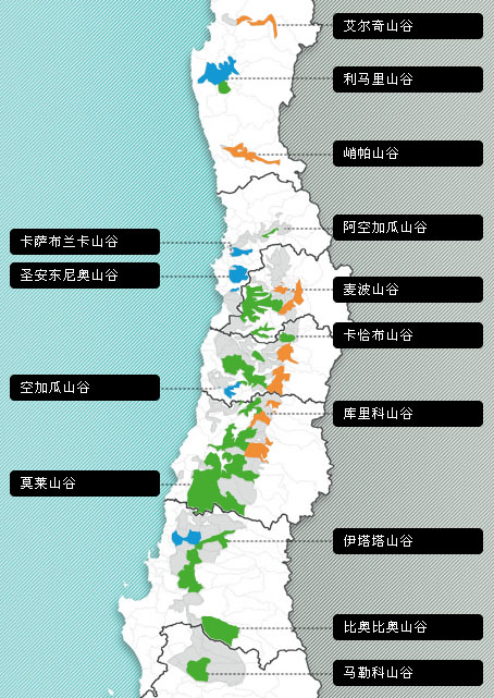 (Coquimbo)、阿空加瓜(Aconcagua)、中央山谷(Central Valley)和南部产区(Southern