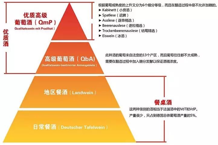 (Tafelwein)、地区餐酒(Landwein)、优质葡萄酒(QbA)以及高级优质葡萄酒(Pradikatswein)。