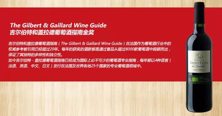 此酒荣获吉尔伯特和盖拉德葡萄酒指南金奖,法国Ecocert