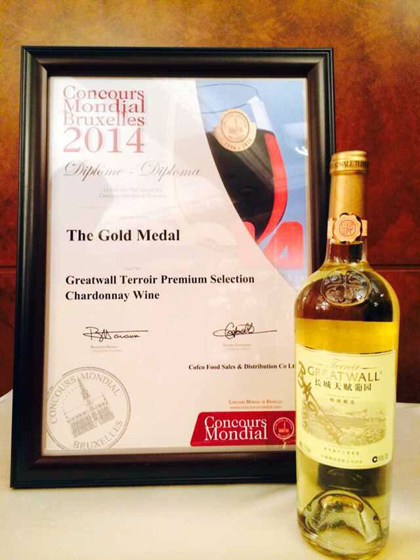 布鲁塞尔评委会主席亲临中国为长城葡萄酒颁发金奖