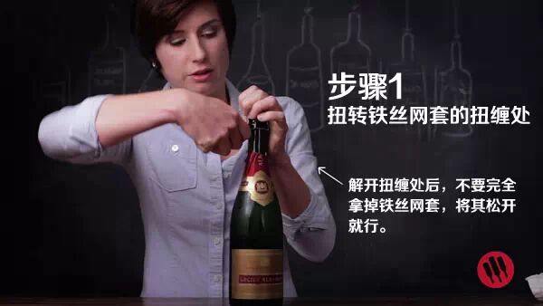 1、松开软木塞上的铁丝网套的同时,用另一只手按住软木塞;