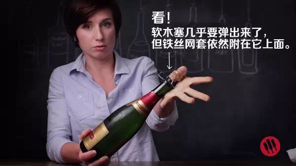 3、当感觉软木塞因气压要弹出来时,用力握住软木塞。不要担心,只要你慢一点,软木塞会轻轻弹出,并发出“玛丽王后的叹息”。