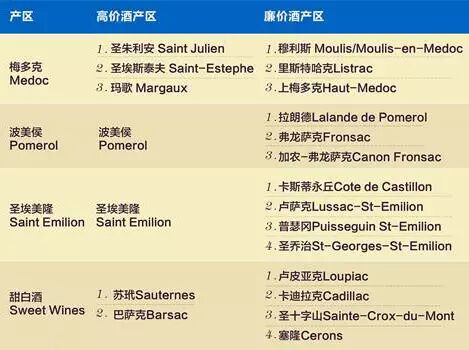 拉夫(Graves)和梅多克(Médoc)三个产区都有不同的分级制度,而梅多克甚至有两个。(朱颜