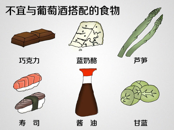 不宜搭配的原因:生鱼片、海带等海鲜料理不宜与一般的红葡萄酒搭配。日本一项研究表明,红葡萄酒中微量的铁元素接触到海鲜食物,会给口腔带来一种鱼腥味,令人不悦。