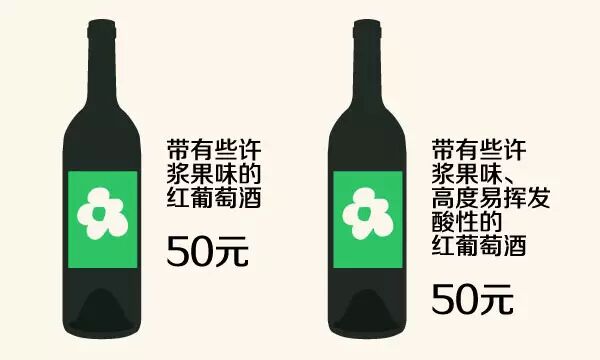 (1)听起来比(2)更有吸引力,谁会想到(1)中的葡萄酒会比(2)中的品质更优呢?