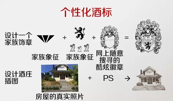 喜欢的动物,家族的徽章或老房子都可以成为你个性化酒标的素材,比如说婚酒酒标,可以运用家族徽章或个人符号来设计出新的酒标,显示出婚礼的重要性。