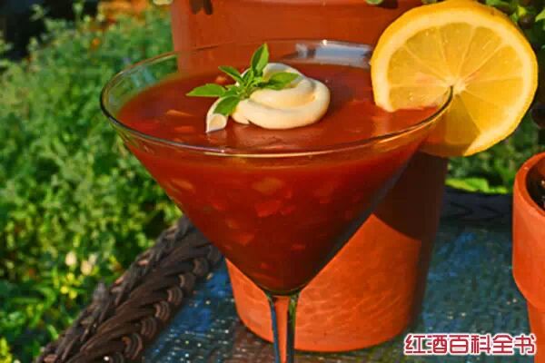 Mary)鸡尾酒由伏特加、番茄汁、柠檬片、芹菜根混合而制成,色泽鲜红,又咸又甜,非常独特。据说,20世纪20年代,在法国巴黎的哈里纽约酒吧,一位名叫费尔南德的调酒师发明了血腥玛丽鸡尾酒。16世纪中叶,英格兰的女王玛丽一世当政,她为了复兴天主教而迫害一大批新教教徒,人们称她为“血腥玛丽”。
