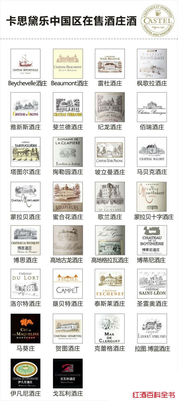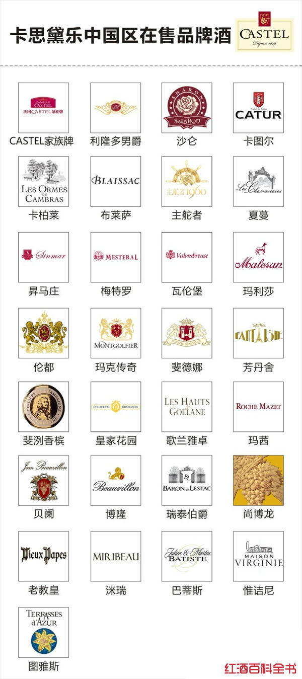 Barreyres)等。Castel中国区在售的葡萄酒可以分为酒庄酒、品牌酒和新品三大块。