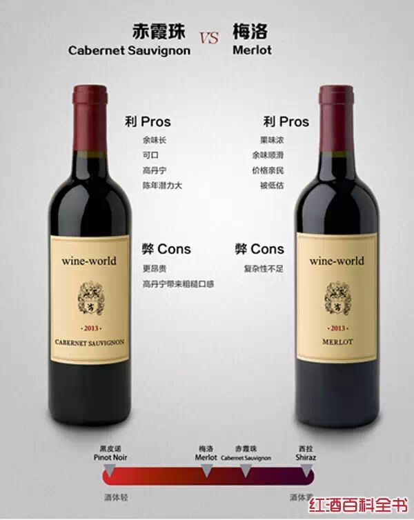 赤霞珠是高贵的酿造红葡萄酒品种之王,而梅洛则是日渐广受喜爱的红葡萄品种。这一高贵和一低调的比拼,谁更胜一筹呢?随红酒百科全书(微信号:wikiwine)来一探究竟。