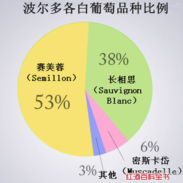 白玉霓(Ugni Blanc)(它主要用来酿制干邑)。但是,大多数的波尔多白葡萄酒都是用塞美蓉和长相思酿制的。