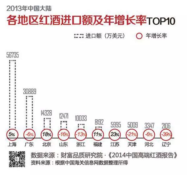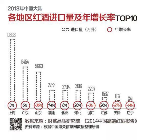 球市场看中国,中国市场看二三线城市”,纵观2013年中国大陆各省份红酒进口状况,“跌”声一片。上海、广东、福建、北京、河北、江苏六大省份红酒进口
