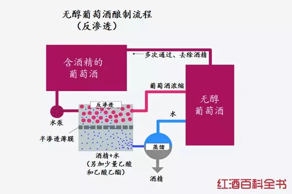 反渗透是一个成本比较高的过程。在酒精被蒸馏掉之前,一些芳香化合物和酚类物质会流失。之后,残余的水分又被加入浓缩的葡萄酒中,这样通过2-4次才能将葡萄酒中的酒精完全移除掉。