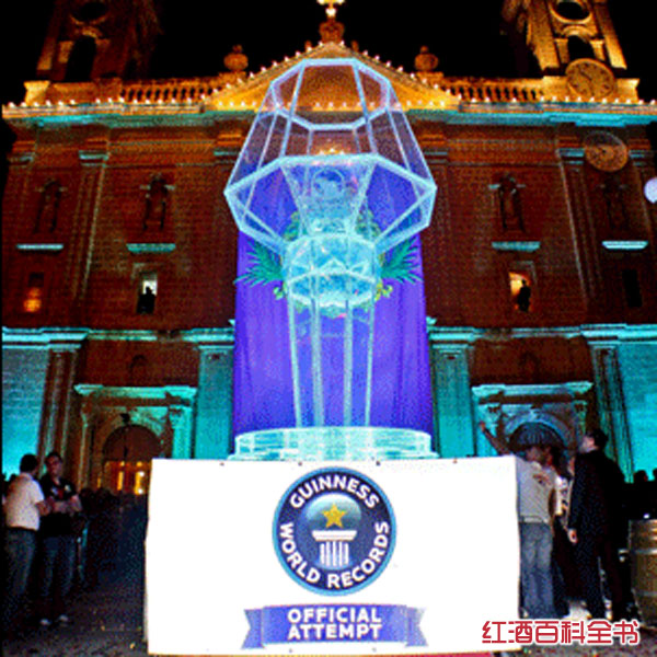 世界上最大的葡萄酒杯高3.87米,宽2.04米,由来自欧洲马耳他岛(Malta)的Kumitat Festi Esterni