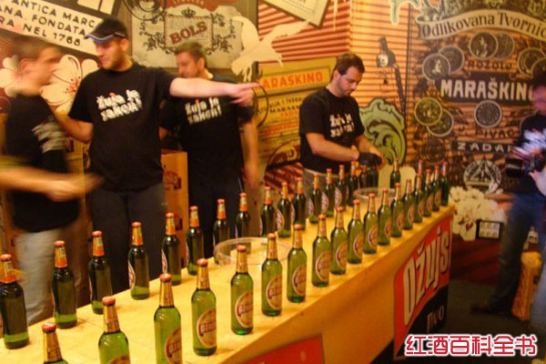 个侍酒团队在一个小时内调配的最多鸡尾酒数量为3906杯,此项记录的保持者是来自德国的马提亚(Matthias)、埃琳娜(Elena)、安娜