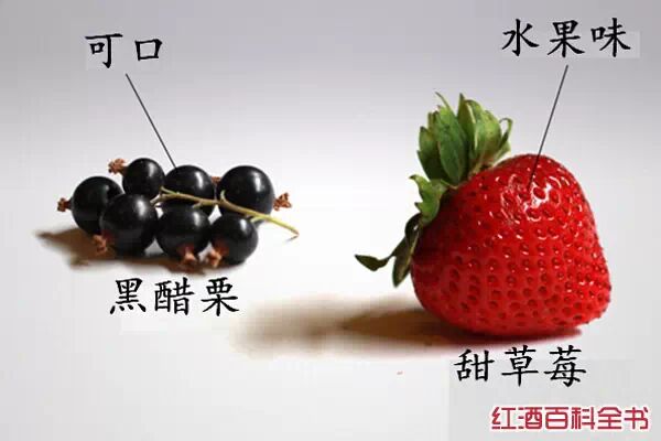 红葡萄酒中的可口术语:蔓越橘、黑醋栗、青椒、绿胡椒、橄榄、野草莓、酸樱桃、桑葚、越桔、牡丹、野生蓝莓、干草药、鼠尾草、皮革、烟草、木炭、焦油、砾石、烘培、矿物。