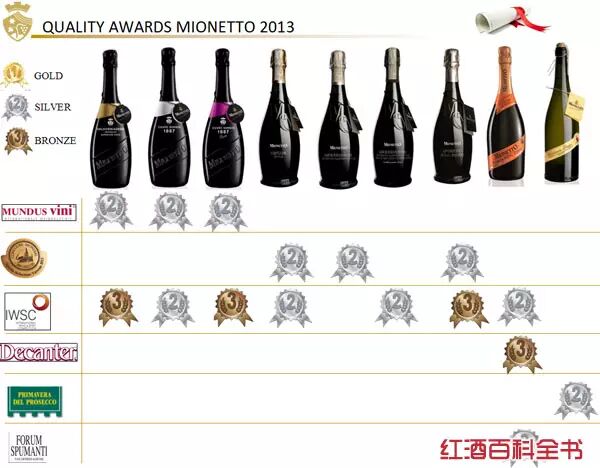 美尼多(Mionetto)起泡酒品质如何?国际葡萄酒比赛上的获奖即是最好的说明。美尼多(Mionetto)曾获奖无数,仅2013年就已获得不少奖牌。