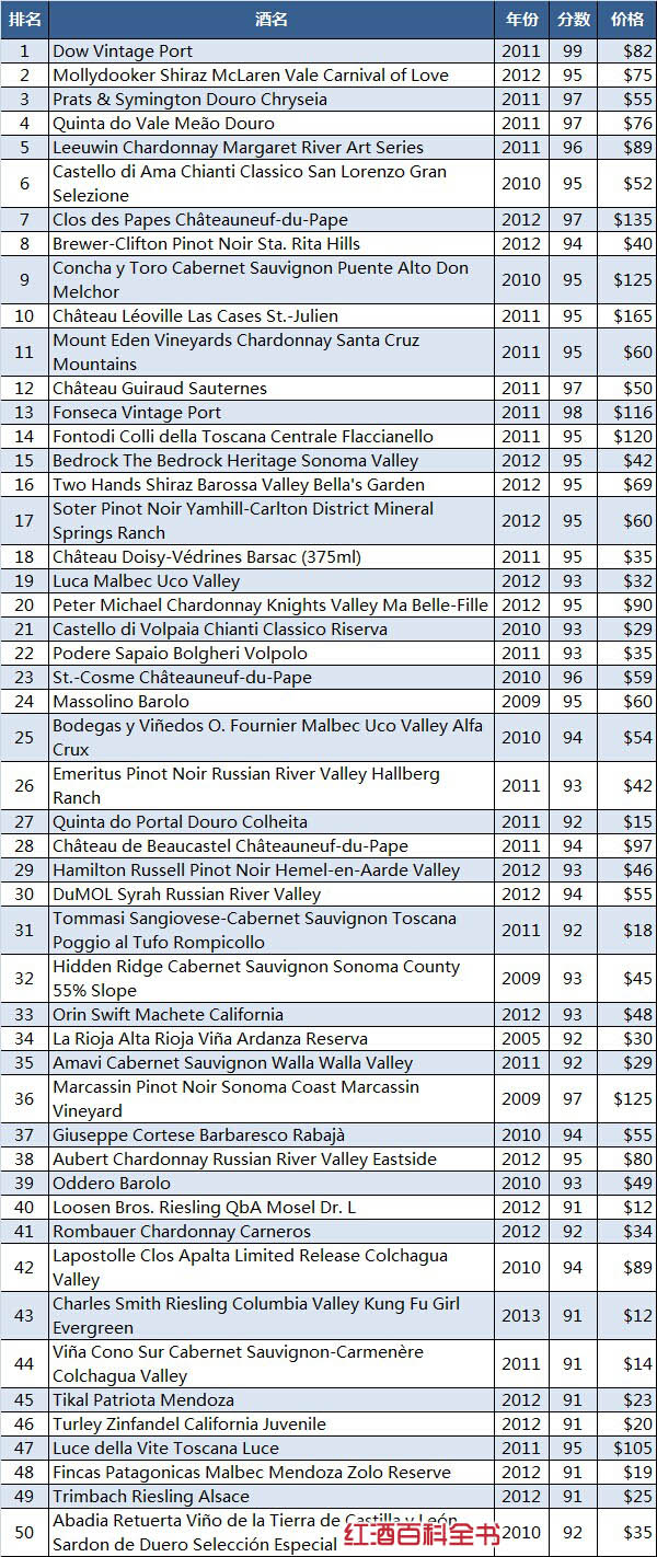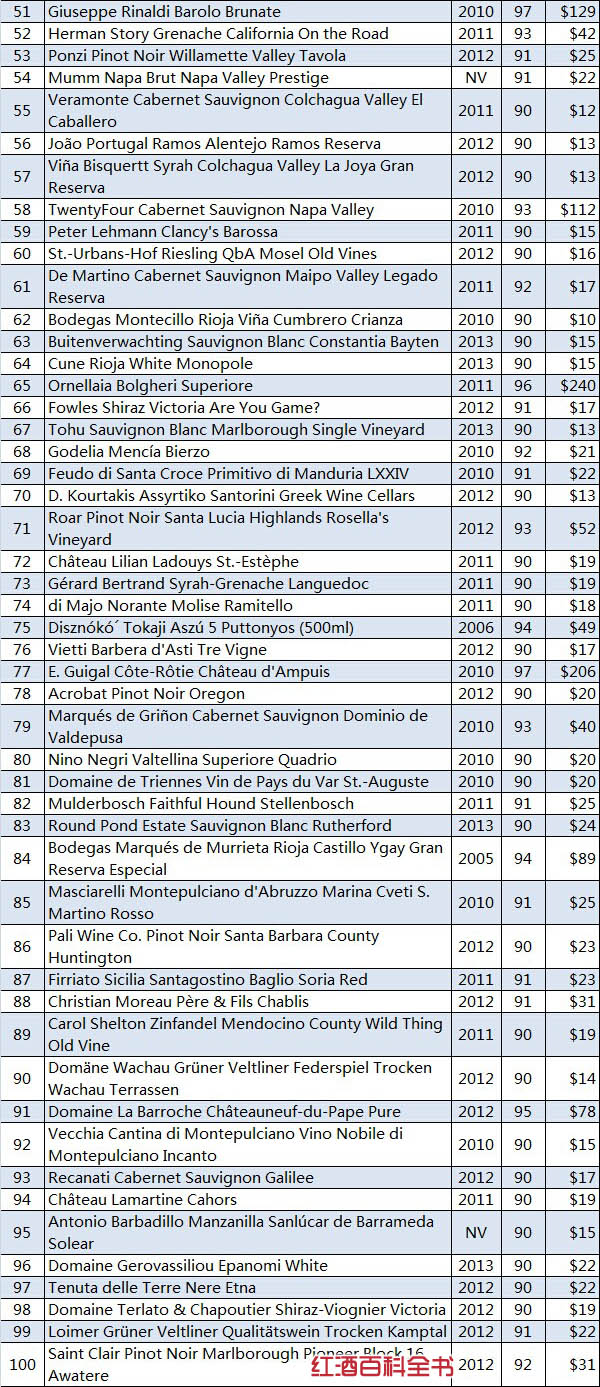榜单|《葡萄酒观察家》:2014年全球100大葡萄酒榜单公布