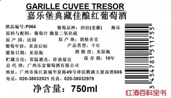 法》规定,进口葡萄酒在流通于市面前必须加贴中文标志,包括酒名称、配料清单、酒精度、制造者和经销者的名称和地址、日期标识、贮藏条件、净含量和警示语