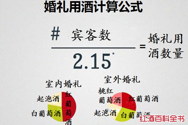 如果你的宾客数为100,用100除以2.15,得到46,即为婚礼用酒的数量。这个公式同样适用其它活动。