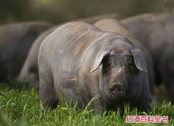西 班牙火腿是全世界最美味最昂贵的火腿,大抵可以分为伊比利亚火腿和塞拉诺火腿,前者属于高级火腿。其中最好的等级被称做Jamon lberico de Bellota或Jamon iberico de Montanera,意思是指在被做成火腿前,吃了12个月橡木果的野生伊比利亚黑猪的后腿做成的火腿。塞拉诺火腿是由常见的白蹄猪制成,在市场上和餐厅 中比较常见;伊比利亚火腿是用产量稀少的伊比利亚黑蹄猪制成,并且制作更讲究,当然价格也更贵。