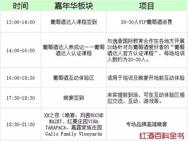 (3)晚宴:重点来了!各品牌之夜隆重登场,你不仅能领略葡萄酒的非凡魅力,看到热情的弗拉明戈和动感的小苹果表演,还能拍卖抽奖,趣味横生。