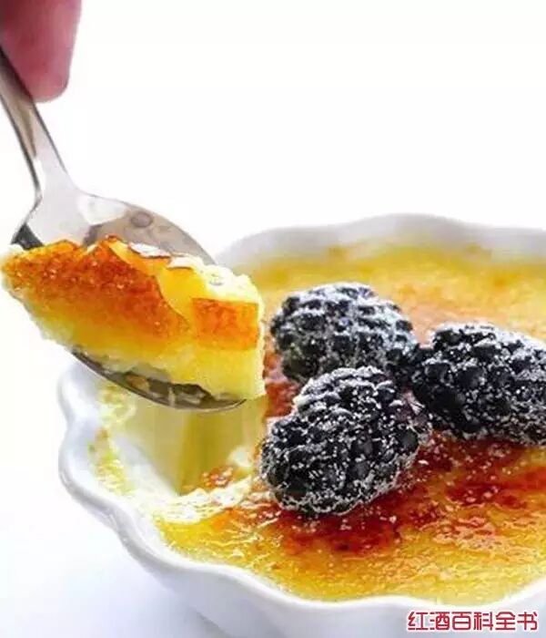糖布丁是另一著名的法式甜品,Creme是奶油的意思,Brulee则是刚烘烤过的意思。上层是琥珀色酥脆的焦糖,吃时用小银勺轻敲表面,焦糖片破碎,下