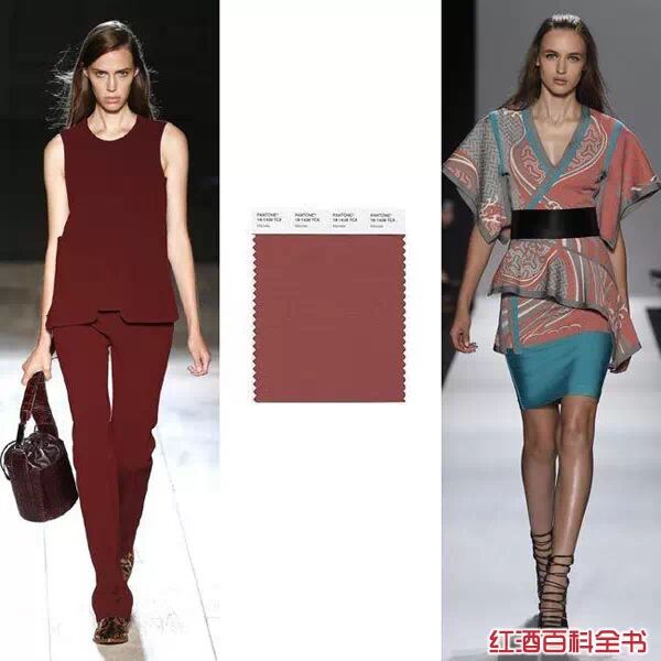 了一年的勃艮第酒红色(Burgundy)明年就要过时了,2015年玛萨拉酒红Marsala上位。PANTONE选择玛萨拉酒红为2015年代表色,