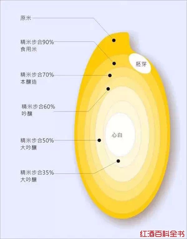 于是,日本人在酿造一款清酒前,第一步要做的就是磨米,将大米最外层的“粗糙”部分磨掉。而剩下用于酿酒的那部分,日本人用“精米步合”来衡量磨米的程度。(“精米步合”这个词在英语里有的人索性直接翻译成“waste”……)