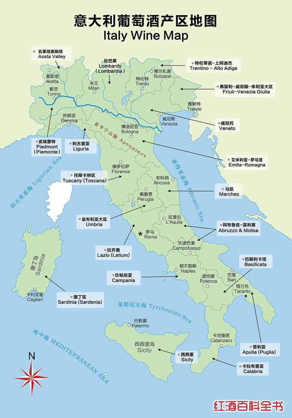 意大利葡萄酒产区众多,不过百科君还是为你介绍主要的几个产区。