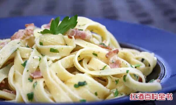 它的做法是把面条、牛奶、黄油、羊奶酪和猪颈肉烩在一起,最后放一个生蛋黄拌在一起吃。
