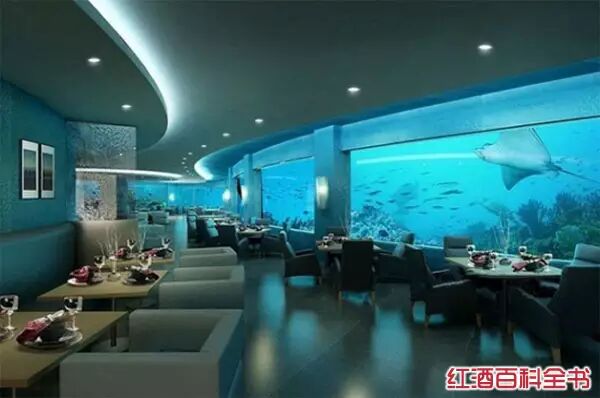 海洋生物在珊瑚礁间穿梭往来。一抬头一晃眼,可能就会看到一群群五彩的鱼儿翩翩然游过,视觉的享受远远大于味觉。在这样优美的环境中就餐花费自然不菲,这