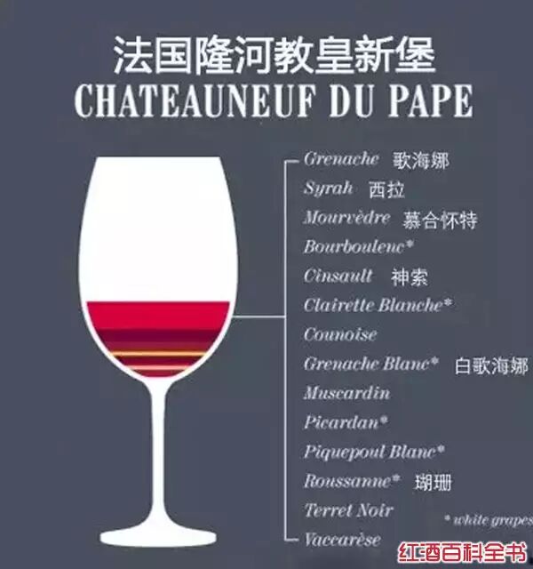 传说中的13种葡萄混酿。堪称世界最复杂的混酿配方之一。出了法国隆河几乎无法复制。