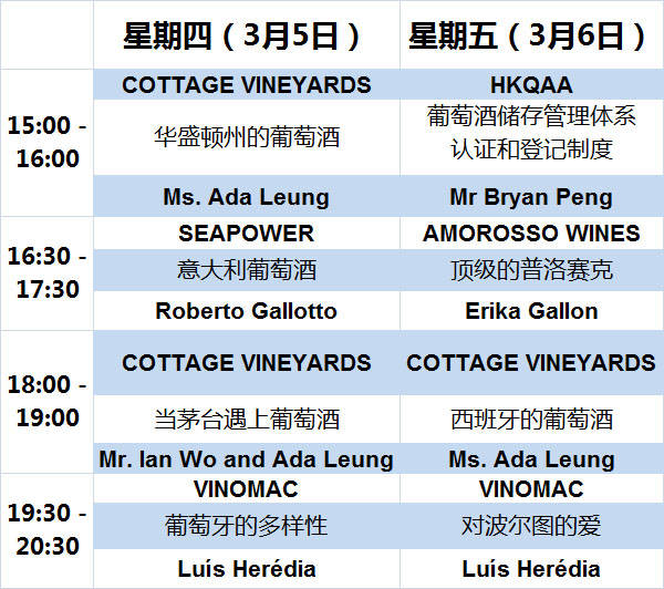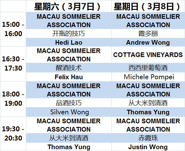 每个班级最多将容乃45位客人,这些课程都是由葡萄酒爱好者/鉴赏家为葡萄酒品鉴新手们设计的,课程内容涵盖了介绍葡萄酒和葡萄酒鉴赏。名额有限,请在网上预定您的学习课程:WWW.WINEDINEMACAU.COM