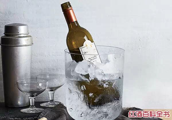 在装好冰块、水和盐(降低溶点,加快溶解速度)的冰桶中放入红葡萄酒,只需15分钟就能将一瓶室温下的酒冷却到理想的侍酒温度。